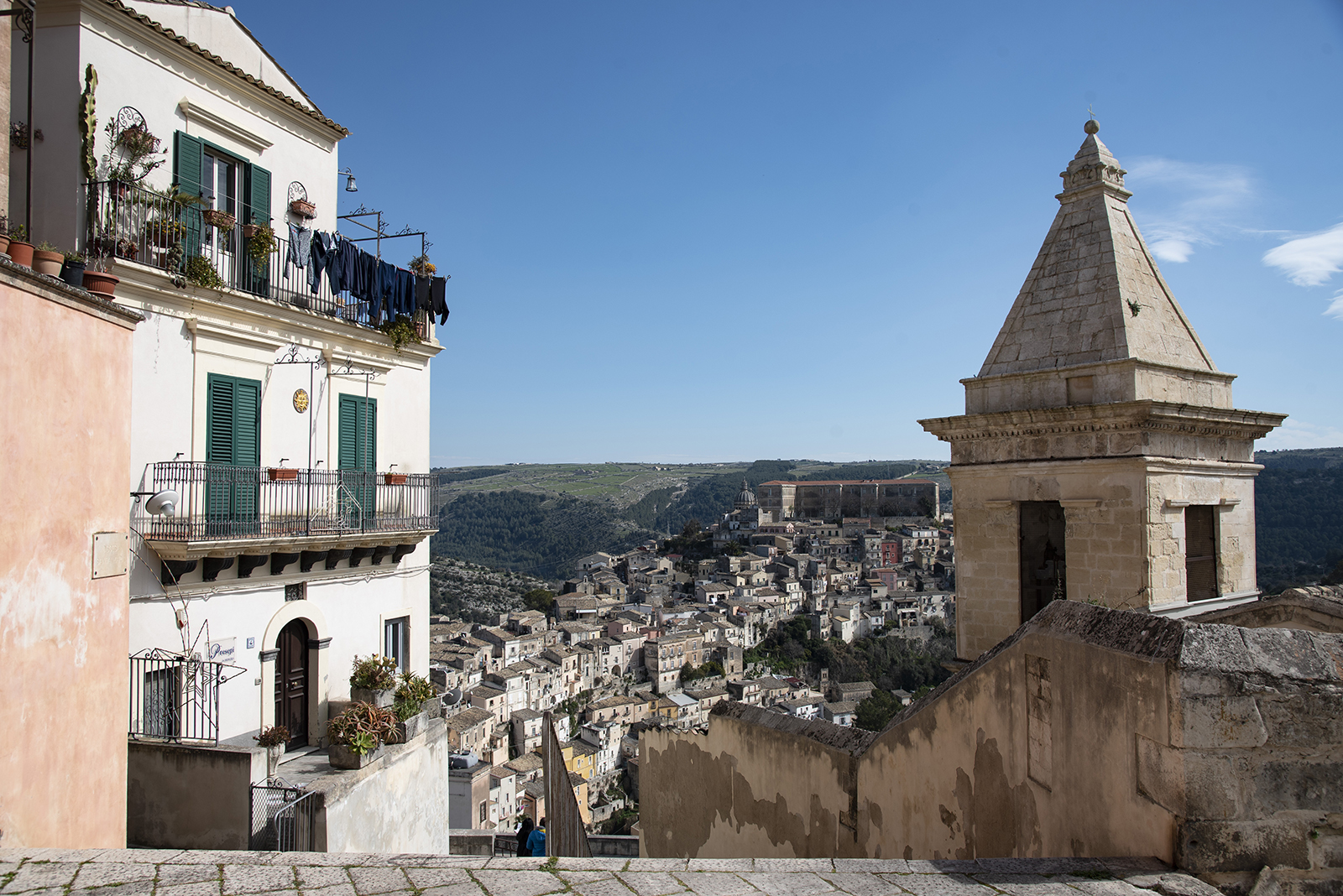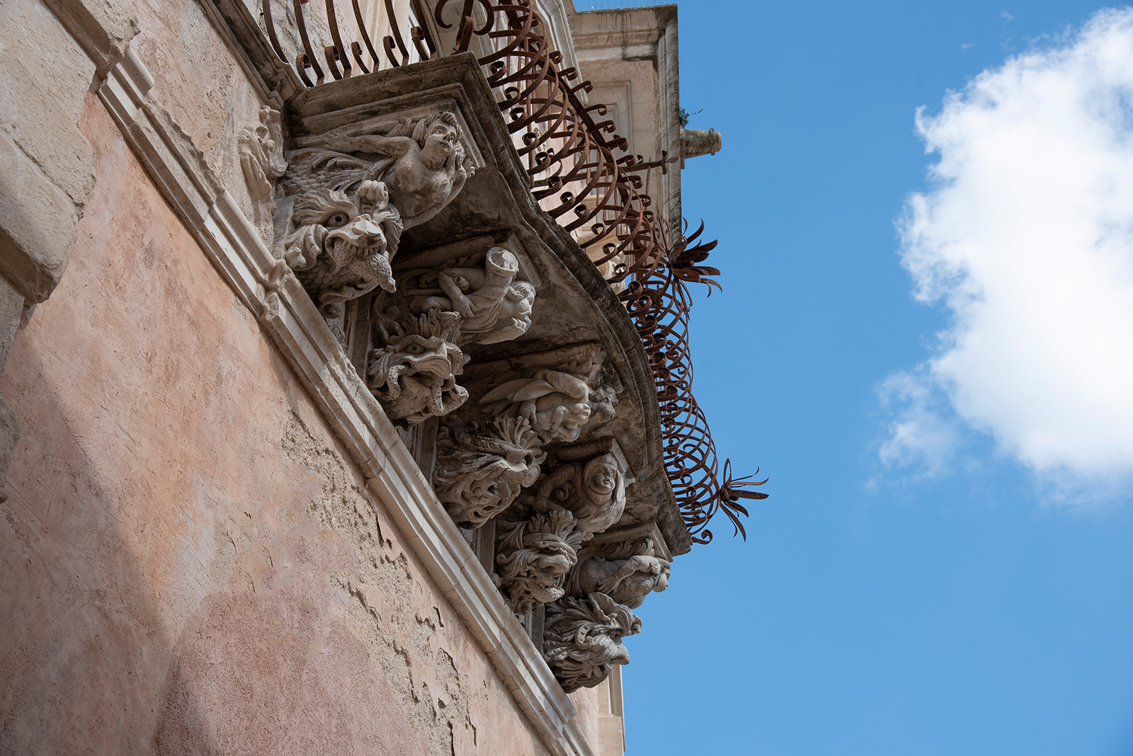 From St. John’s cathedral, we descend towards the edge of the hill that overlooks Ragusa Ibla, passing the elegant Palazzi Bertini, Cosentini and La Rocca, with their elaborate balcony corbels. The walk continues downhill, by numerous flights of steps, towards the center of Ibla. We pass more ornamented balconies and windows, as well as the sumptuously decorated churches of Idria, Purgatorio and St. Joseph, and the beautiful three-tiered façade of the Cathedral of S. Giorgio, to mention but a few of the magnificent edifices included in this itinerary. The guided walk ends in the public garden called giardino Ibleo, with its palm avenue, small churches, and the splendid 15th century portal of St. George’s Cathedral.